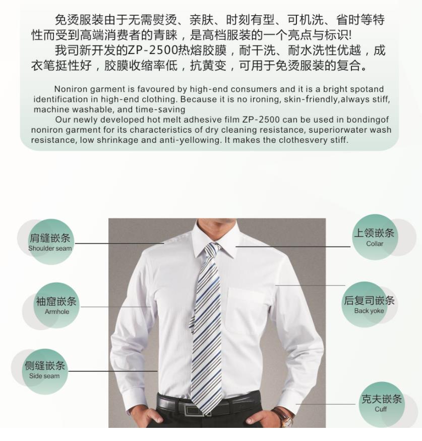 การใช้แผ่นฟิล์มติดกาวร้อนละลายบนปกเสื้อและข้อมือค่อยๆ กลายเป็นตัวเลือกที่ดีกว่าสำหรับเสื้อเชิ้ตระดับไฮเอนด์ที่ไม่ต้องรีด